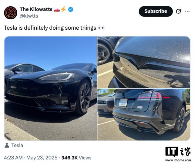 IT 世家 5 月 24 日消息,前天汽车媒体 Drive 曝光 2026 款特斯拉 Model S Plaid 在伪装车图之后,目前的消息来源 klwtts 该车无伪装谍照直接曝光。
