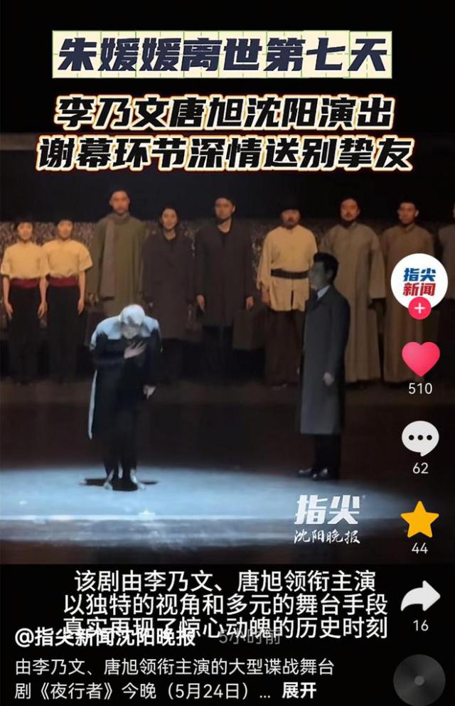 朱媛媛头七,李乃文演出结束时哀悼“媛媛,走稳”,唐旭强忍泪水。