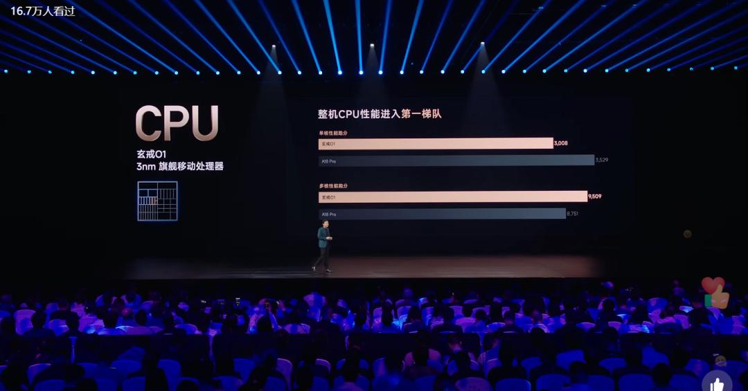 据雷军介绍,玄戒O1芯片单核性能跑分超过3000分,多核性能跑分超过9500分,“超过最新一代苹果(芯片)”。