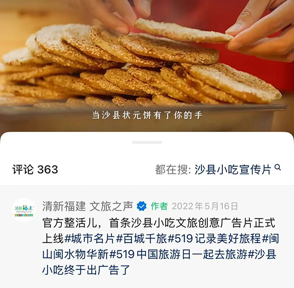 “来福建 2022年5月16日,沙县小吃创意广告视频发布。