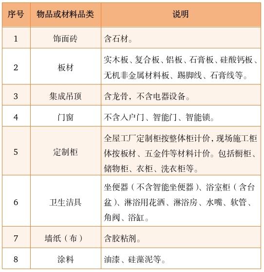 不在上述范围内的物品材料,如黄沙、水泥、管道等,不予补贴;人工装修费用不予补贴。家具成品柜不在装修补贴范围内,消费者可以向商务部门申请“新旧置换”补贴。