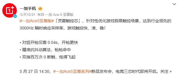 即将在 5 月 27 每天发布的一加 Ace5 至尊版。