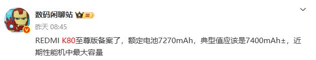 定位和价格,一定是对标。 REDMI K80 至尊版啦。