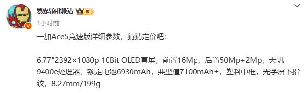 第一,跟一加 Ace 5 至尊版,同场发布的一加版 Ace 5 竟速版。