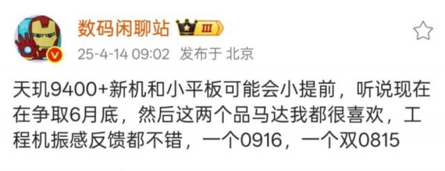 另外一个还配备了天玑 9400e 新机器,是真实的自我 Neo7 Turbo,发布日期定在 5 月 29 日。