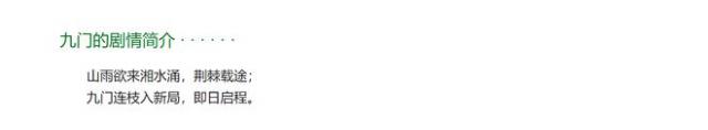 当你去看《九门》的官方微博和百科全书时,你没有写任何关于《九门》的内容。简单来说就是“九门连枝进入新局”。如果你品尝这个“新”,估计又是一个悬而未决的故事。