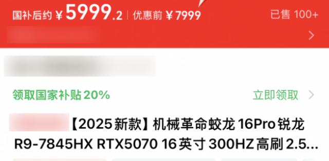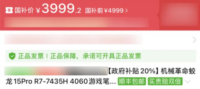 机械革命龙 15 Pro,现在国补之后的价格只要 3999 元。