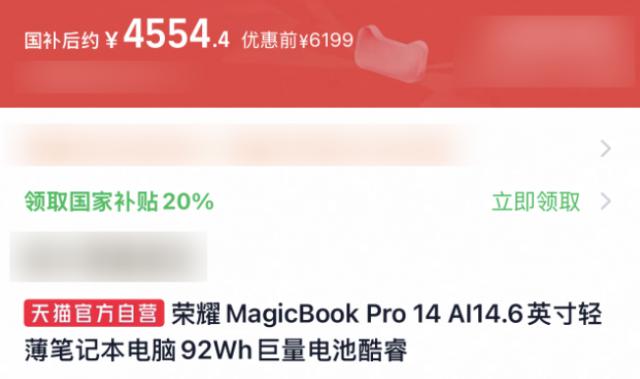 荣誉 MagicBook Pro 14|国补后 4554 元