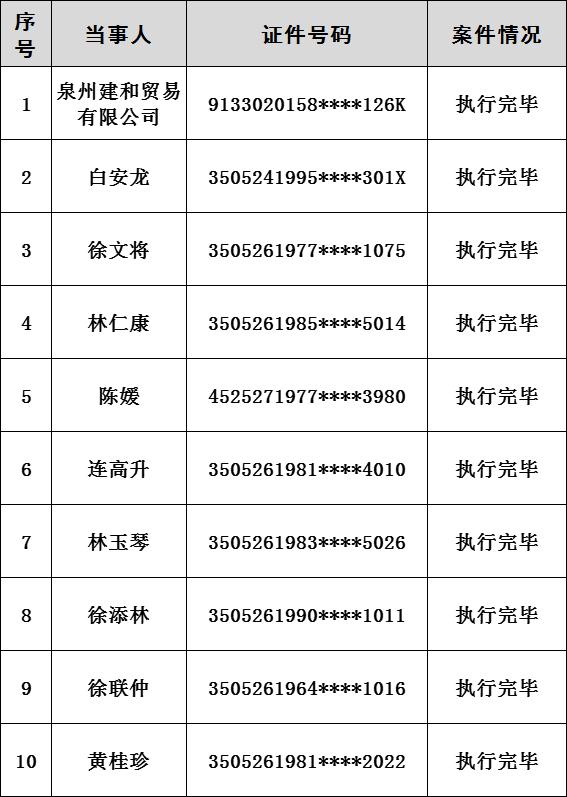 由于下列被执行人已经履行了生效法律文书确定的责任,法院及时修复了其信用。