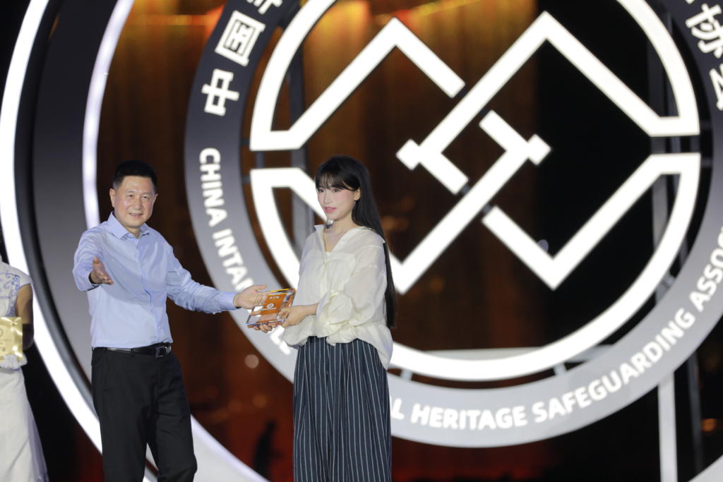 在中国非物质文化遗产保护协会“非物质文化遗产推广大使”和“青年非物质文化遗产视频创作哺育行动总顾问”现场,李子柒