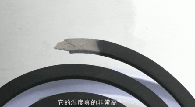 采用热成像仪检测发现,此时蚊香头的温度已经达到1020℃,如此高的温度很容易点燃日常生活中的物体。