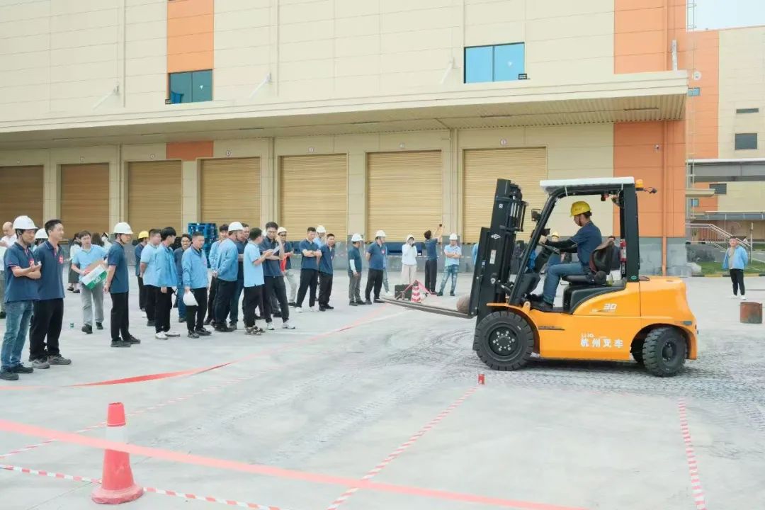 本次比赛由荆门市总工会主办,刀区总工会承办,亿威动力安全中心协办。持续了两天,吸引了亿威动力荆门基地全体工作人员积极报名。活动现场气氛热烈,决赛各项选手各显其能。叉车工程设置了宅门低杆、接力避障、“工”字移物等比赛科目。运动员操纵叉车灵活穿行,表现出高超的操作方法。“宅门低杆”测试玩家的精确控制,叉车需要在狭小的空间内稳定穿越低杆;“接力避障”模拟实际工作场景,玩家需要接力快速安全地完成复杂路线的驾驶;“工”字移物要求玩家在规定时间内按照“工”字路线准确运输货物。