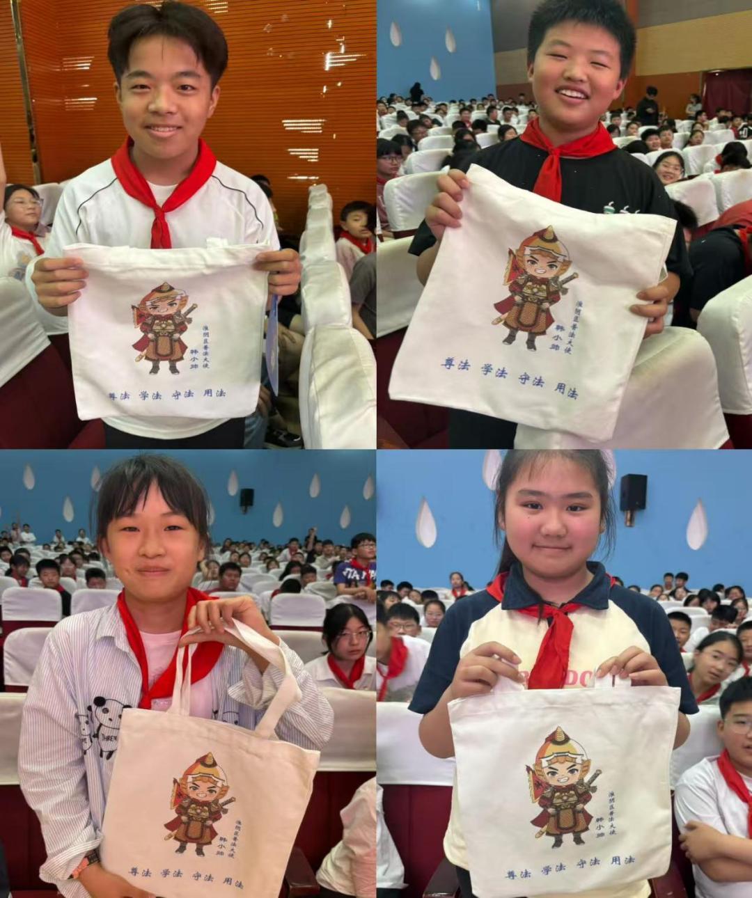 "受校园欺凌,局外人该怎么办?"当工作人员抛出问题时,学生们直接举起双手。“告诉老师”、“报警!”竞赛声此起彼伏。答对的同学欢呼着接过普法礼包,“韩小帅”的文化创意礼物,图文并茂的普法宣传彩页,实用又有趣,引导家长和孩子一起学习。