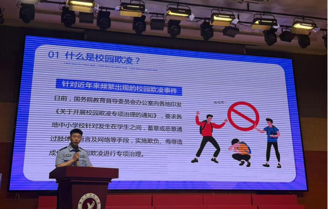 “你以为只是给同学起个外号?这可能构成侮辱罪!”派出所民警彭警官将法律规定“翻译”成孩子们能听懂的语言。改编的真实案例在大屏幕上播放,观众中的学生睁大了眼睛。“骂人真的很违法!”针对毕业班学生容易发生的冲动行为,彭警官用“战斗成本清单”算了一下账,生动的讲解让原本玩耍的学生陷入了沉思。