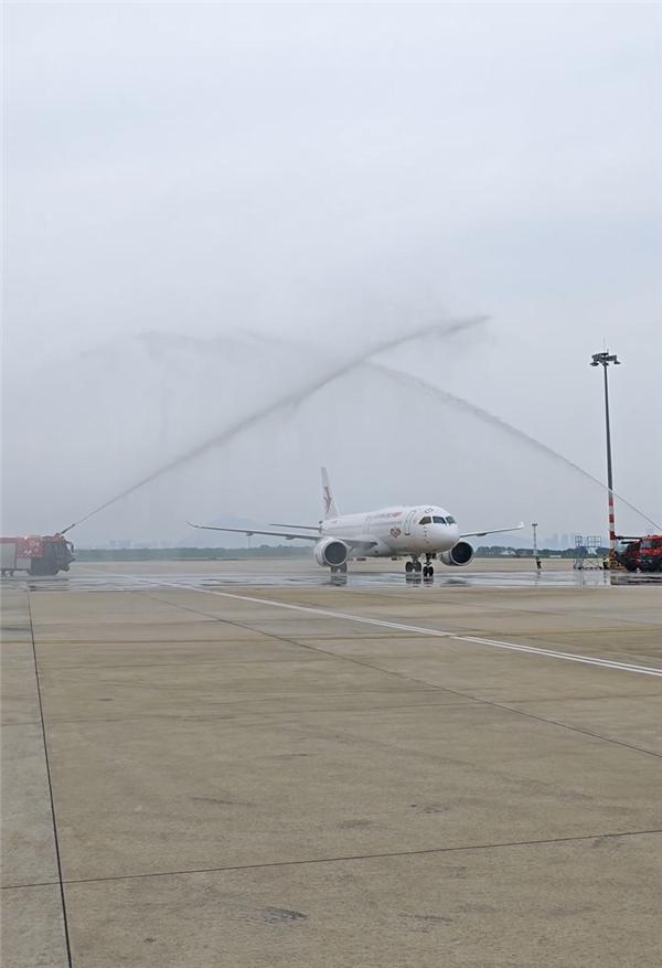 厦门还以民航最高礼仪“过水门”迎接 C919 的来临。