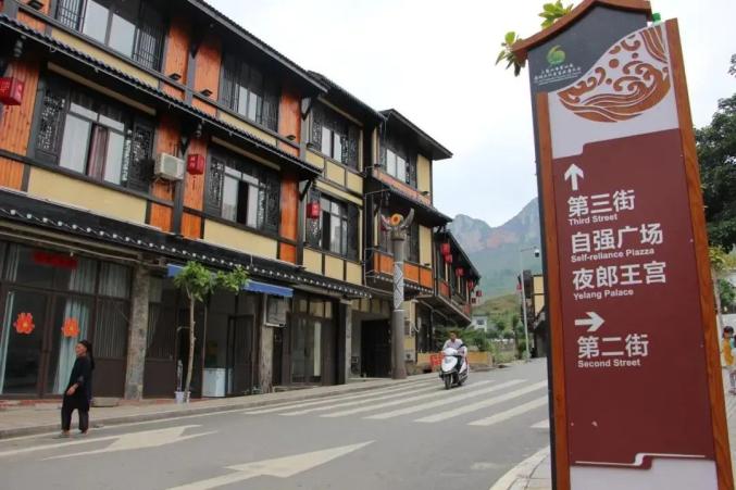三街:枸酱美食街、夜郎民俗街、铜鼓休闲街。“十二坊”分别是:染布坊、织锦坊、竹叶坊、茶馆、戏乐坊、创意坊、麻衣坊、美容坊、美食坊、养生坊、石雕坊、中药坊。它充分融入了古夜郎文化、布依民俗等元素。在享受当地美景和美食的同时,体验浓厚的民俗风情。