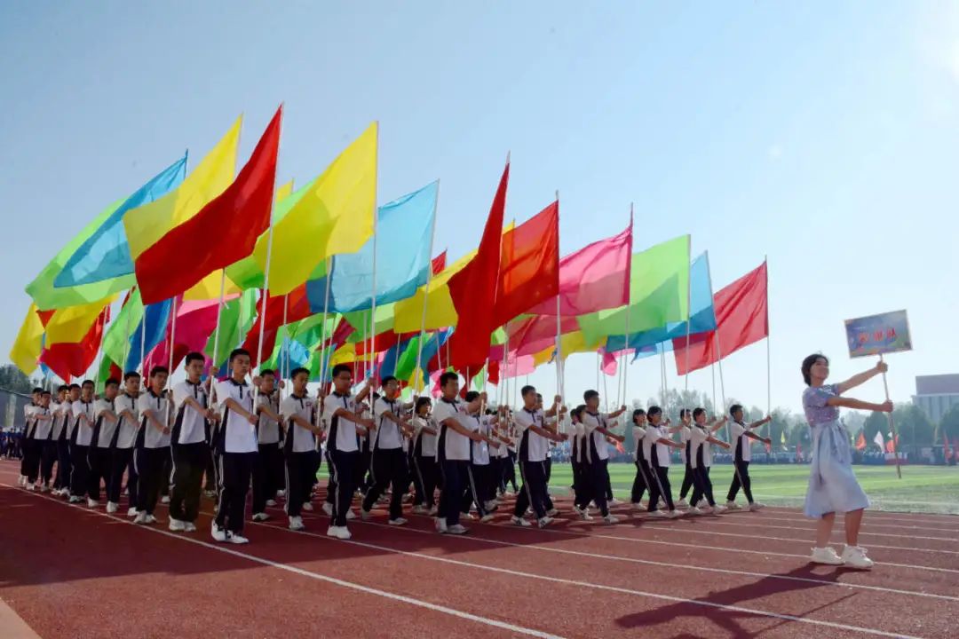 彩旗方阵也不甘示弱,他们高举着各式各样的彩旗,彩旗随风飘扬,像青春的羽翼,带着运动员的梦想飞向远方。
