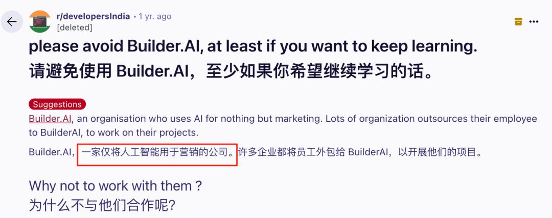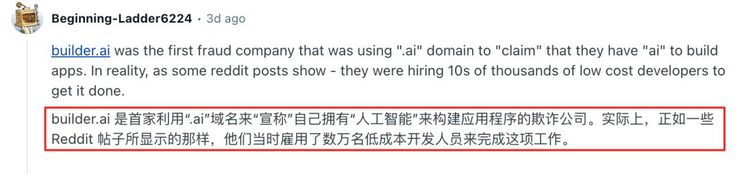 也有知情人士直接透露了Builder.事实上,ai是用来使用的「ai域名」公司来欺诈。公司雇佣了许多低成本的开发人员来欺诈。「装作AI」。