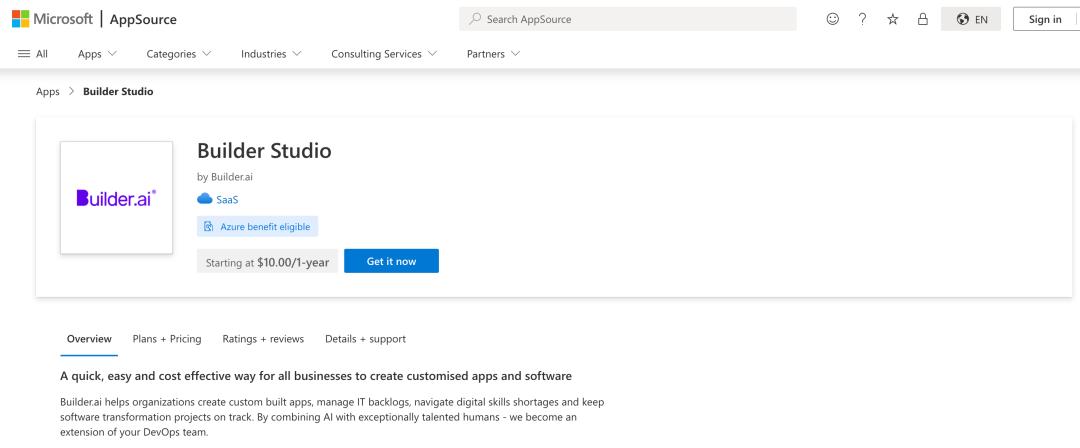 同一年,作为战略投资和合作伙伴,微软加入其Builder.Ai平台集成到其云服务产品中。