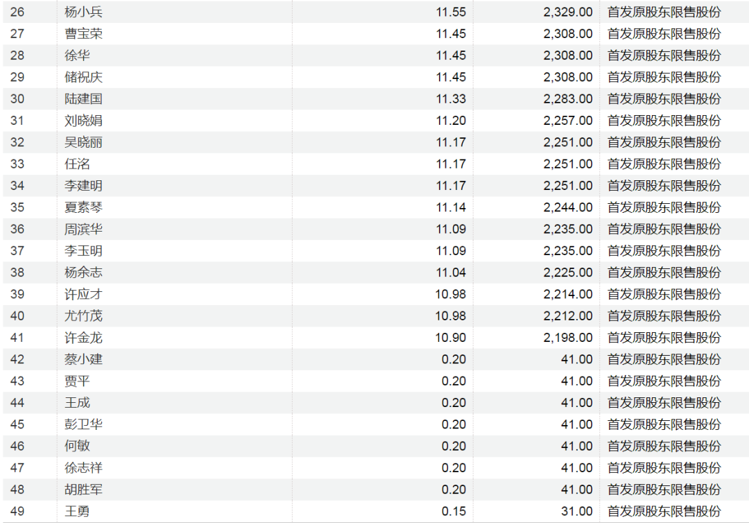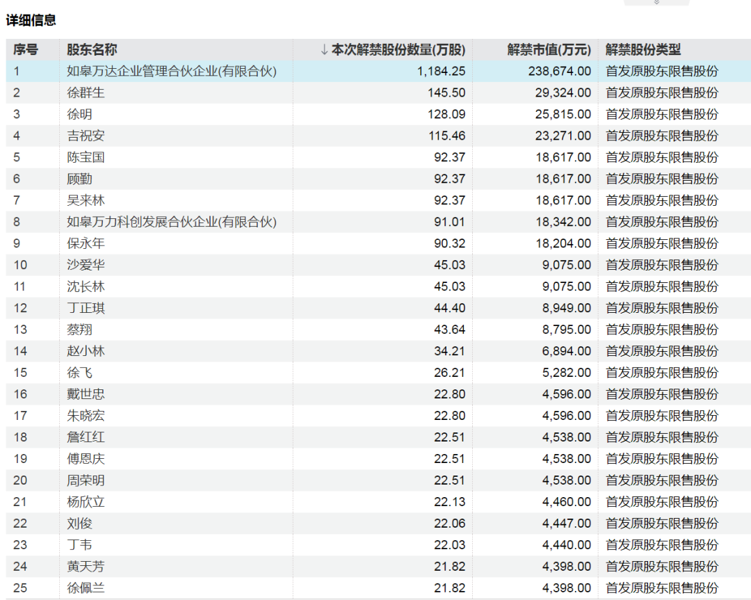 如皋万达企业管理合伙企业(有限合伙)万达轴承解禁股东、徐群生、徐明等58名股东,其中如皋万达企业管理合伙企业(有限合伙)为万达轴承最大股东,徐群生、徐明、徐飞父子为万达轴承实际控制人。