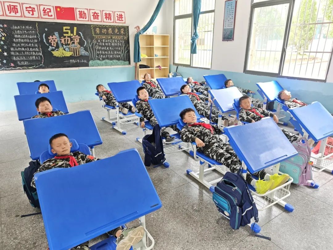 轻轻一拉一调,桌椅瞬间“变身”午休床,将孩子从趴着睡觉的疲劳中解放出来。校长李禾生说:“这些桌椅不仅解决了午休问题,还调节了身高,保护了脊柱健康。”