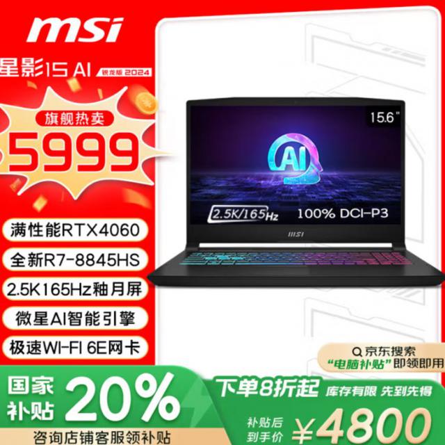 R7-8845HS/RTX 4060/1 × 16GB-5600 内存 /512GB SSD/2.5K 100�I-P3 165Hz IPS 屏