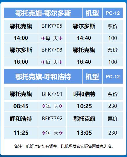 5月26日,鄂托克旗通用机场客票信息,网上售票时间为60分钟。如果您在航班起飞前不少于60分钟出行,无法预订机票,您可以拨打0477-229999机场客服电话为您购票。详细信息>>>