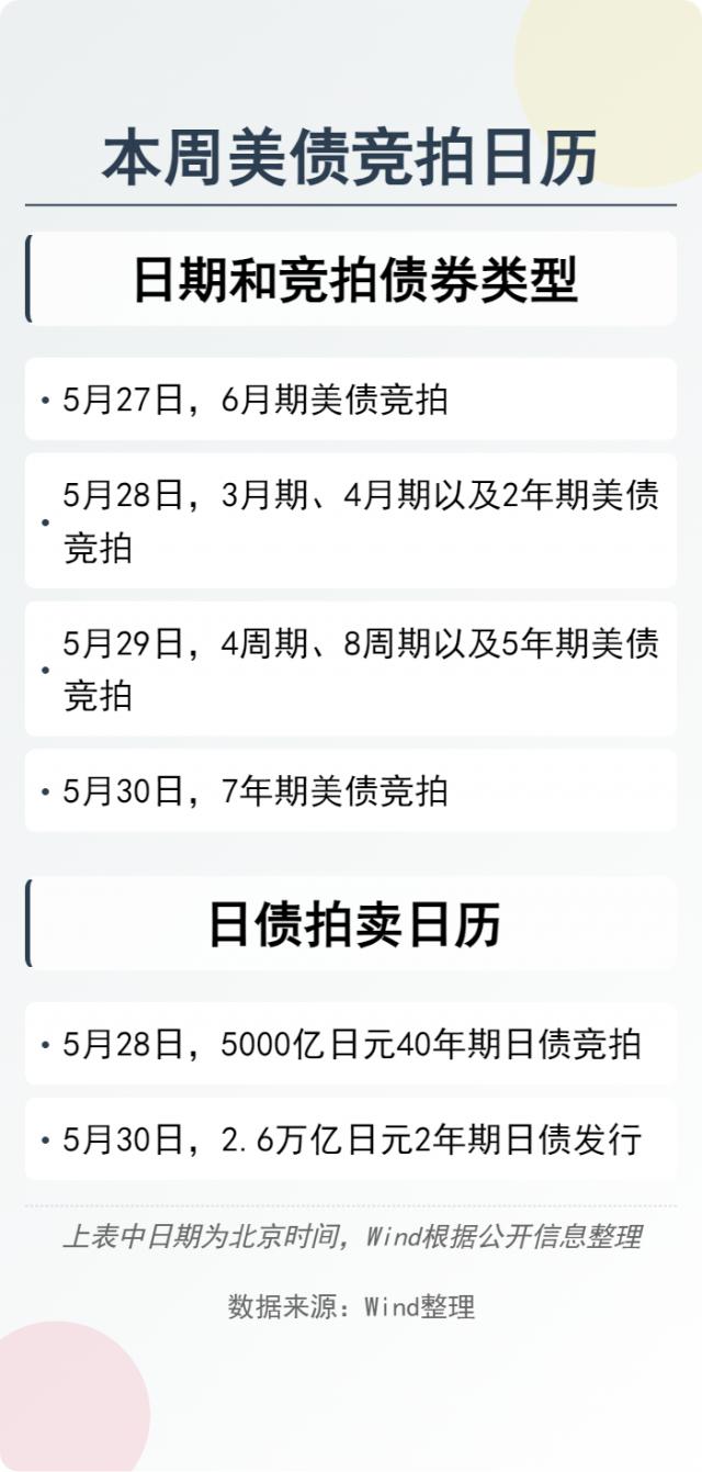 具体来说,定于本周拍卖的美国债券更倾向于中短期,预计需求不会像上周拍卖的长期债券那样惨淡。然而,日本财政部也将拍卖。 5000 亿日元 40 年限日债,并于周五发行 2.6 万亿日块的 2 年限日债。