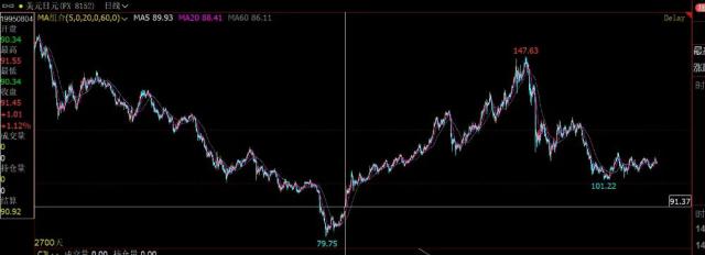 这个中间,日元 95 年里的 80 周边掉价到 98 年 147 从上到下,整个日本的资产缩水非常严重。