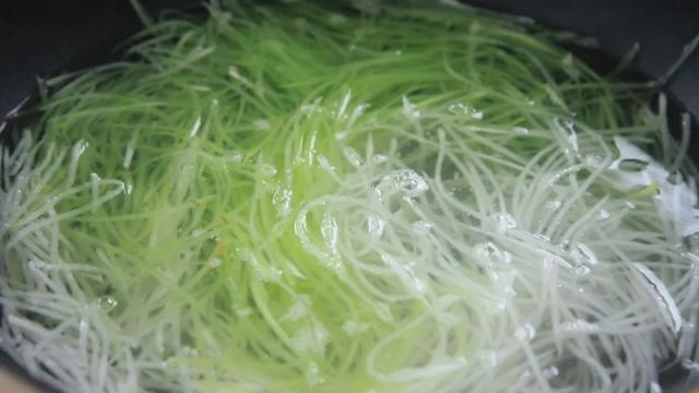 萝卜丝和生菜丝焯水 1 几分钟后,捞出冷水。
