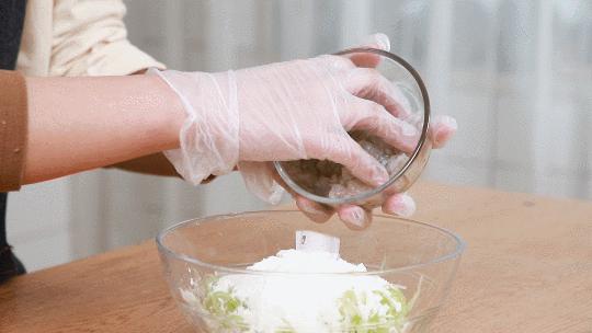 虾仁丁 120g 虾皮 10g 鸡蛋 1 个盐 2g 调味汁 10g 黑胡椒粉 0.5g