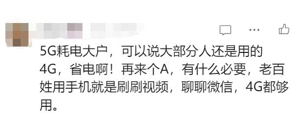 还有人选择观望:“我 4G 大家都用得很好,没必要急着上去。 5G-A,省钱更现实。"