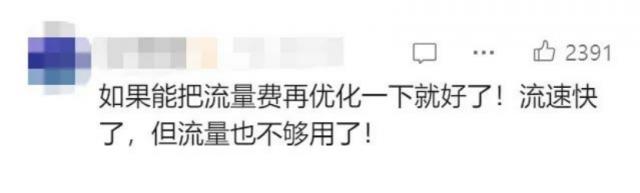 尽管听上去是白送,但也有网友调侃:流速快,流量更不够用,“能不能顺便提高流量费用?”