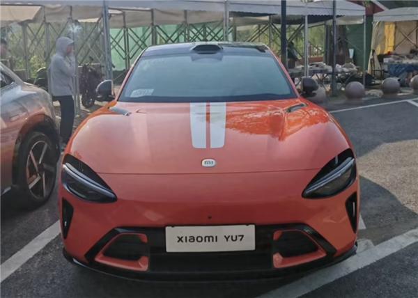 封闭式轮毂的组合 赛车拉花!小米YU7熔岩橙实车首次曝光