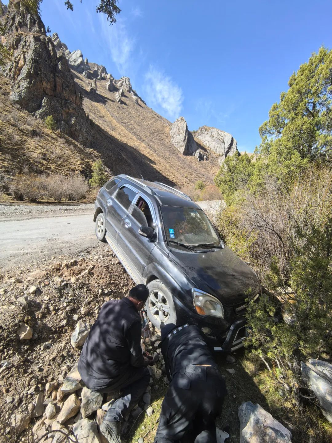 2025年5月25日,杂多县人民法院驻热情村虫草采集管理卡点干警收到村民紧急求助,称其在果道沟道路上不小心开车坠落,车辆底部被石头卡住,无法移动。由于事件发生在偏远的地方,没有人没有信号,村民无助,情况紧急。