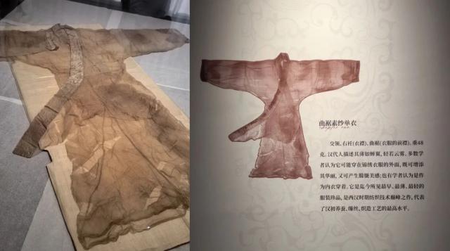 首先,这种风格必须要想到长沙马王堆一号汉墓出土的“”素纱禅衣",禅衣也可以称"单衣",可以看出应该是一件单层的衣服,而马王堆出土的两件素纱衣,各自重量。 48g/49g,折叠后可以存放在火柴盒里。