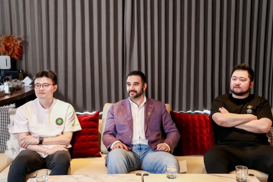 但是五月十七日早晨,我来到了上海,但并没有急着去会场,而是先参加了一次群访,我遇到了几位重磅客人:沙特费萨尔亲王HRH Prince Faisal bin Bandar Al Saud--亚冠英雄荣誉主席 & Savvy游戏集团副主席;王忻阳-- 英雄亚冠CEO兼品牌负责人 & 英雄电竞创始人;谢帆-- 亚冠英雄总裁 & 英雄电竞创始人。