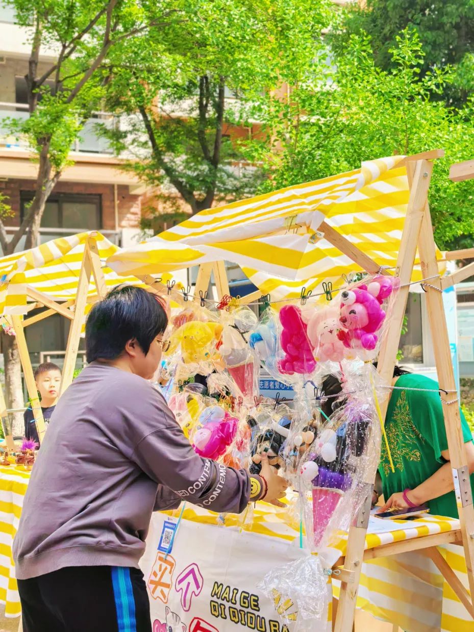 另一方面,“大汽球咖啡馆”徐老师的气球摊吸引了很多居民停留。五颜六色的气球变成了她手里会眨眼的兔子,生动逼真的太乙真人...多变的气球注入了乐趣,焕发了新的生活。拐角处的“绒线故事”摊位更像是打翻了调色板。金靛青、鹅黄、珊瑚粉等10多种闲置毛线被卷成彩虹瀑布,此刻成为“热门商品”,吸引了一群熟练的阿姨驻足流连,忍不住购买。“这种渐变毛绒钩杯垫最合适!”
