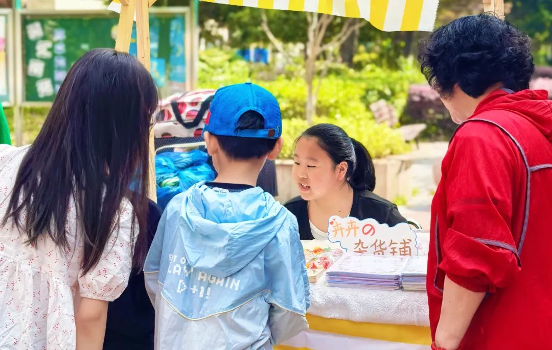 市场一开始,浩浩就站在手绘的“彩虹杂货店”招牌下,整齐地堆放着珍藏的童话书,不遗余力地向留下的孩子们介绍:“这本《夏洛特的网》将编织一个新的故事!“5岁的乐乐是这个跳蚤市场的新摊主。她给队友打电话吸引了很多好朋友。摊位上摆满了精心准备的娃娃、玩具和她的自行车。隔壁的“六朝元老”摊主卉正在“熟练”地招揽生意。精致的“5元一串,9元两串”DIY手镯吸引了顾客围在一起,很快就迎来了“今天的第一单”。摊主们有的捧着人生的“第一桶金”,有的在物品交换中换来了自己喜欢的玩具。