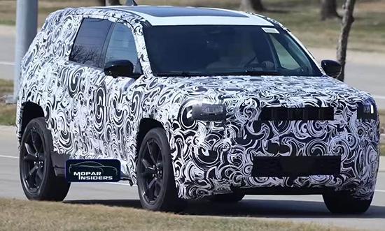 根据这次曝光的谍照图片,测试车被较厚的伪装包裹,但整体轮廓仍然符合要求。 Jeep 品牌 SUV 家族风格。前格栅采用经典风格。 7 孔形,两侧大灯也比较方形,前脸宽大,营造出很强的厚重感。同时,整车融入了变质设计,包括大灯、前格栅、车轮等。,充满了运动感。