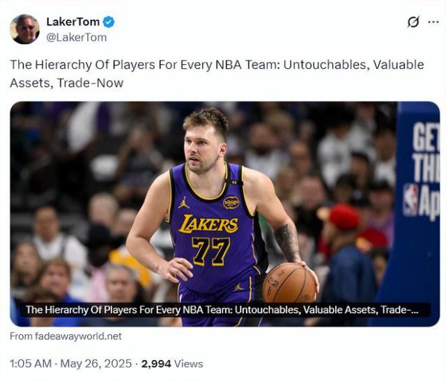 他写道埃迪 - 比塔尔完成了一项伟大的工作,他列出了这一点 NBA 可以交易的资产和不可触及的资产,可以交易的资产取决于交易收入。湖人,一个能马上交易的球员,应该对某些人感兴趣,因为湖人需要一些人来帮助东契奇和勒布朗,尤其是提高防御。