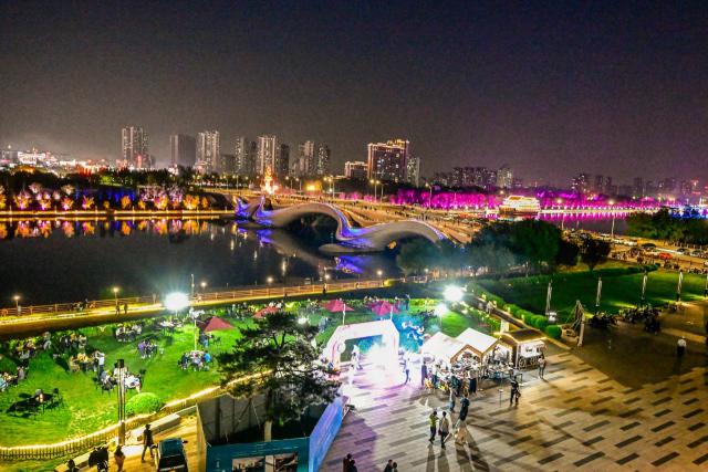 夜市里,烧烤的烟花,草坪的柔软,河水的波浪...一起编织成城市里的慢镜头结界。如果你想逃离紧张的日常生活,来这里——坐在运河边品尝美食,看着月亮爬上千荷露桥,让夏天的晚风把烦恼吹成对岸的灯光。