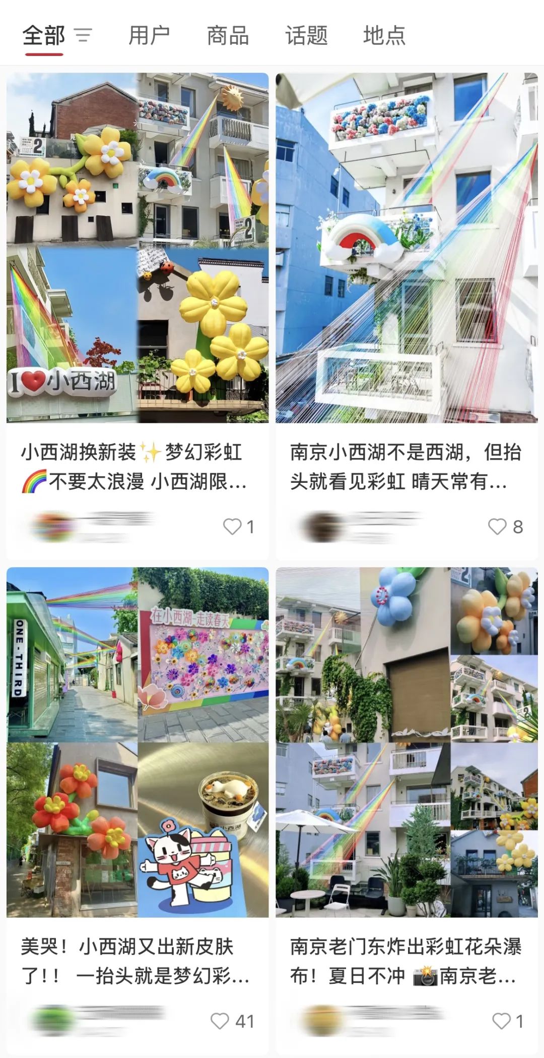 在南京,爱逛小店的朋友一定找到了:最近小西湖街区换了新皮肤!可可爱的彩虹花瓣瀑布占据了小店的空隙。~