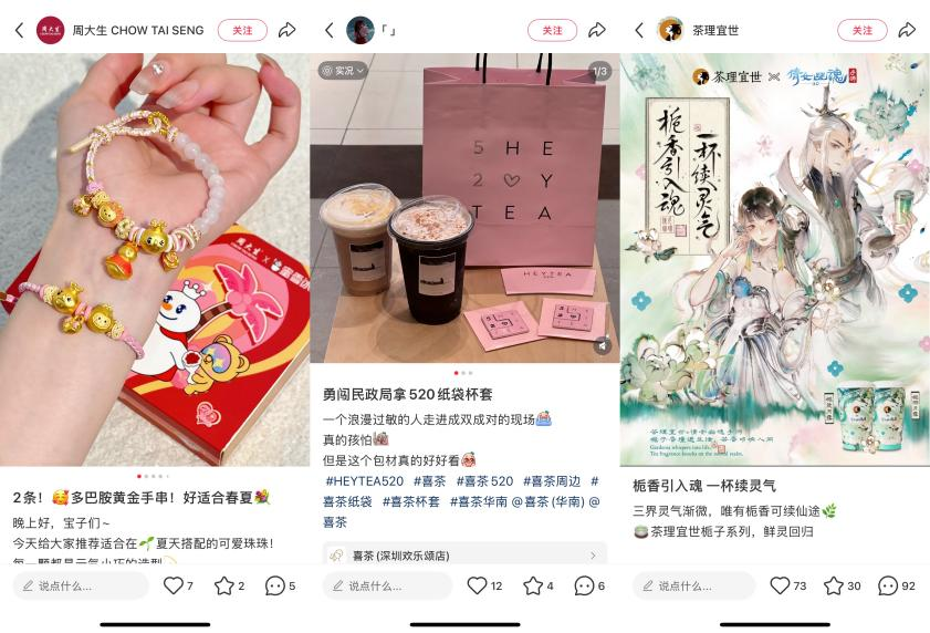 品牌端,茶理宜世在线开设主题店,邀请著名COSER将游戏角色服装作为“一日店长”进店。;如果消费者在小红书上发布打卡内容,也可以在游戏中获得限制道具,客户可以携带周边地区完成指定的游戏动作。