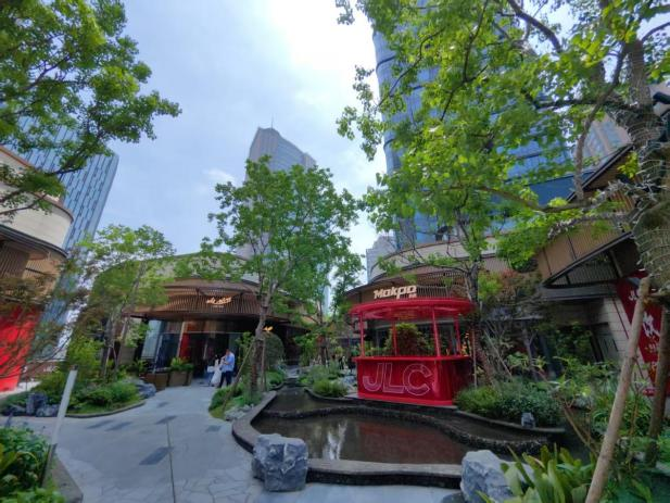 六楼屋顶打造的生态园林式餐饮街区,也让金陵中环在新街口别具一格。