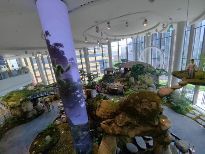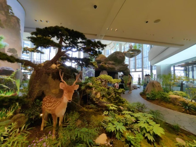 一座微缩版的生态公园建在商场内部,区域内的布景给人一种迎面而来的真实感。