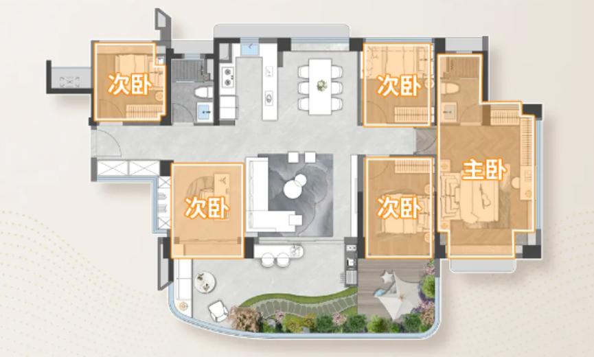 很多四代住宅采用LDKBG集成设计(L客厅、D餐厅、K厨房、B阳台、G花园),形成规模较大的复合多元空间,可以适应更丰富的生活场景,比如家庭聚会。、孩子们的生日聚会,家庭健身,下午茶,甚至可以在空中花园里种菜,创造从田园到餐桌的生态体验…