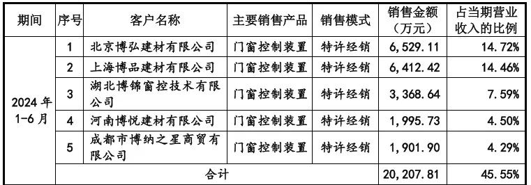 公司海外收入占2021-2023年的3.11%、3.36%、2.06%。2024年上半年,公司前五大客户的销售收入占营业收入的45.55%,均为国内公司的特许经销商。这种集中的渠道结构可能会影响公司的运营。