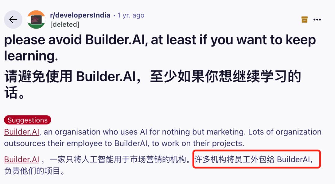 也有疑似Builder.ai做过的员工出来说,这是一家营销公司,出来骗大家钱。