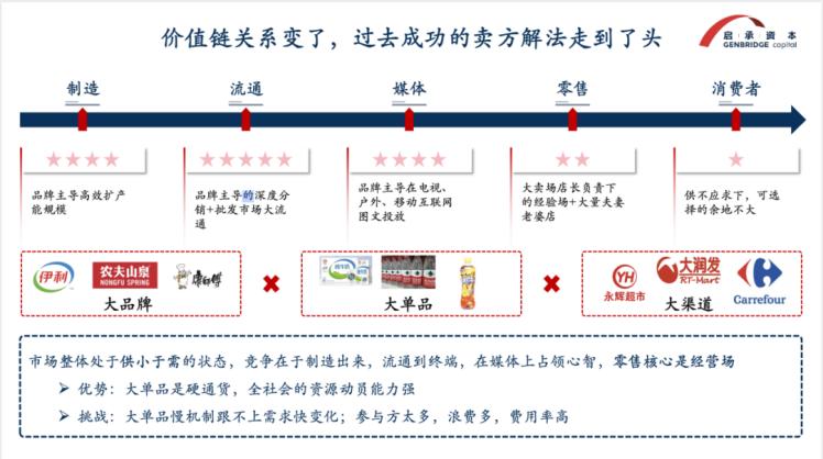 但是,这种增长范式在2020年代迎来了转折点。城市化增速放缓至年均0.8%,制造业生产过剩导致食品和饮料行业供需关系逆转。尼尔森数据显示,2023年72%的快速消费品市场已经进入股票竞争。随着电子商务、社区团购等渠道的碎片化,客户决策权显著提高,品牌商的渠道控制力减弱。以传统超市为例,永辉、家乐福等头部企业近五年关闭率超过30%,而胖东来通过优化选择和客户体验,店铺效率翻了一番,印证了张鑫钊的分析:“增量市场的‘一起做大蛋糕’变成了股市的‘如何分蛋糕’游戏”。